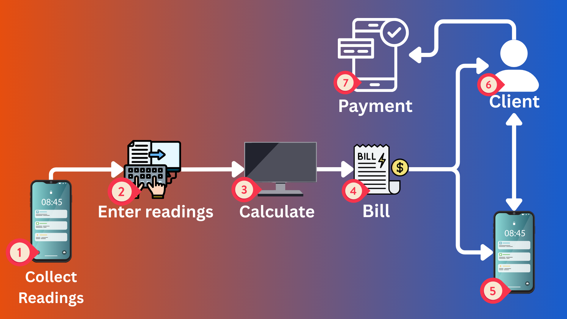 • Performed by using a simple mobile application that help clients to scan the meter barcode at site.